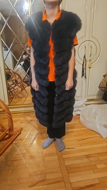 - Kürk detalları: qalın, təbii görünüşlü tülkü tipli kürk haşiyə (kapuşon və ön tərəf boyunca)