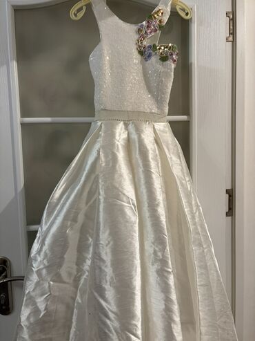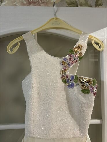 TECILI SATILIR‼️ Ag rengli, qısa ziyafet donu Parlaq, formaya
