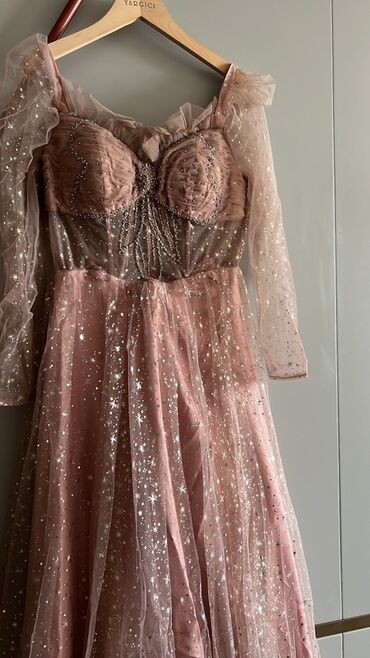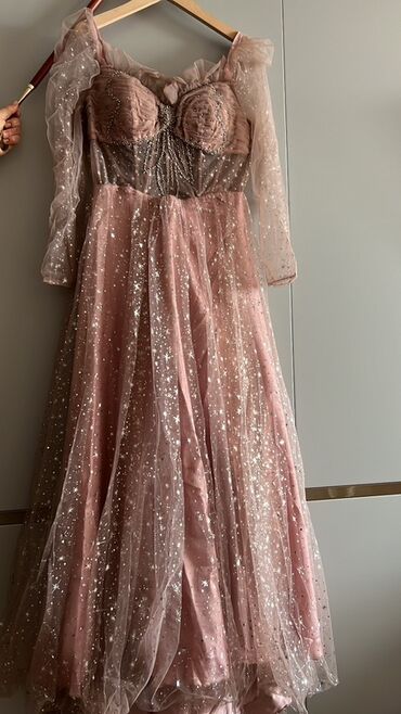 Pudra-çəhrayı rəngdə uzun ziyafət geyimi
