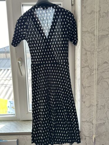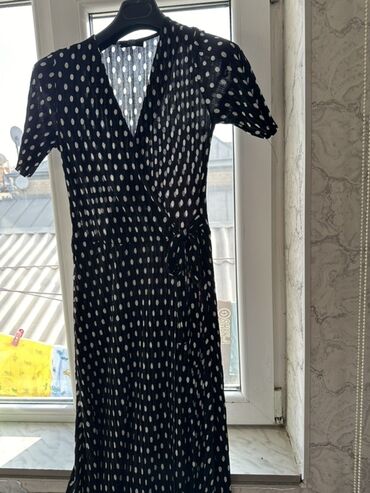 Qadın paltarı – qara fon üzərində ağ xallı dizayn - Model: V-yaxa