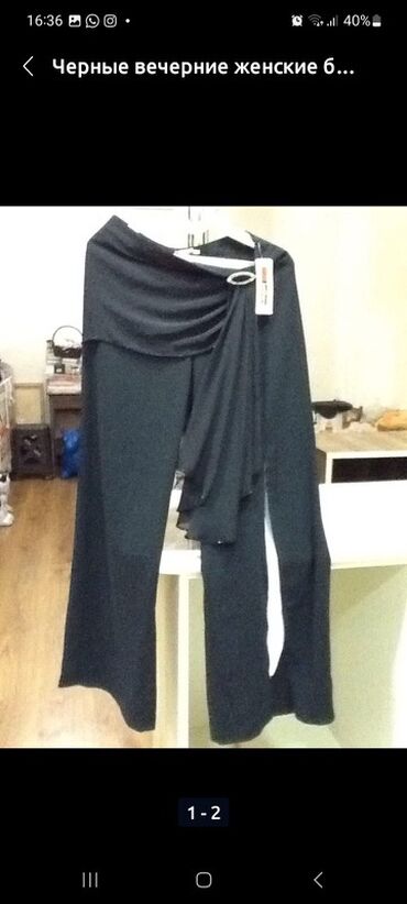 Qadın şalvarı – qara-boz rəng, geniş ətəkli (flare) kəsim. - Yüksək