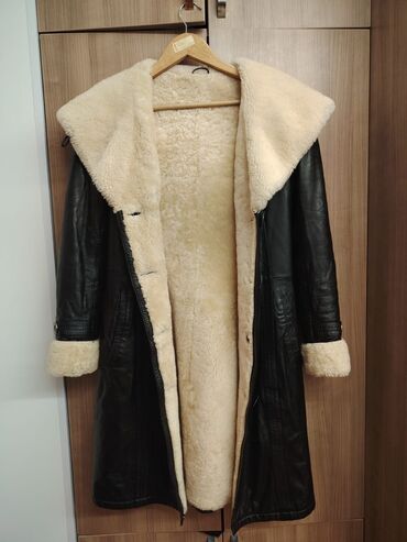- Material: qara rəngli dəridən hazırlanmış, içi tam qatlana bilən krem rəngli təbii/şerpa tipli yumşaq kürk astarlı