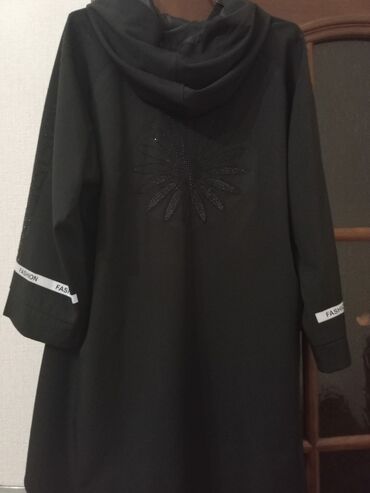 Qadınlar üçün qara kapüşonlu üst geyim (tunikka/palto tipli)