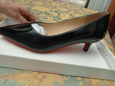 - Rəng: parlaq qara üstlük, altlıq və dabanın altı qırmızı vurğularla