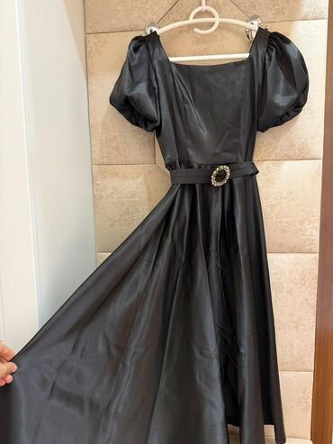 Tezedir bir defe geyinilib hec bir prablemi yoxdu olcu 48 / 50 bedendi - Rəng: qara, incə qızılı parıltılı effektlə - Parça: elastik, parıltılı toxuma; iç hissə astarlı - Model: A-kəsim, axıcı ət...