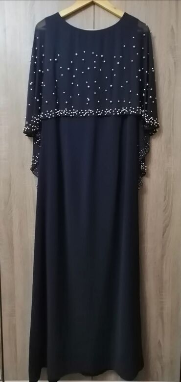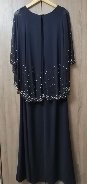 Detallar: kənarları incə işlənmiş pelerin, ön və arxada mirvari bəzəklər, asimmetrik pelerin kənarı.