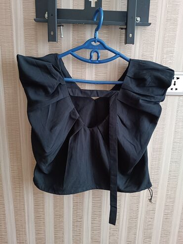 Qara rəngli qısaqol qadın köynəyi. s,xs ölçülü crop