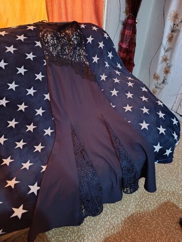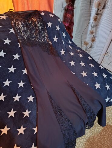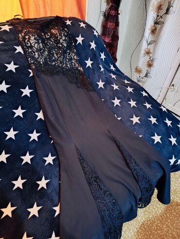 Qadın gecə/gecəlik ziyafət paltarı - Üst hissə: Qara rəngdə, incə tor (şifon/tyul) materialdan uzunqol, sinə və çiyin hissələrində şəffaf effekt. Üzərində xırda parıltılar və aplikasiyalarla bəzək...