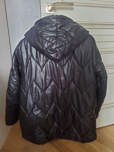 Qadın qış gödəkçəsi – qara rəng - Ölçü: XL (etiketdə görsənir) - Uzun dizayn, kalçadan aşağı örtür - Kapüşonlu - Romblı (romb naxışlı) kapitone tikiş - Ön hissədə tam uzunluğu əhatə edən metal ferm...