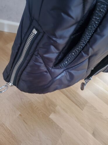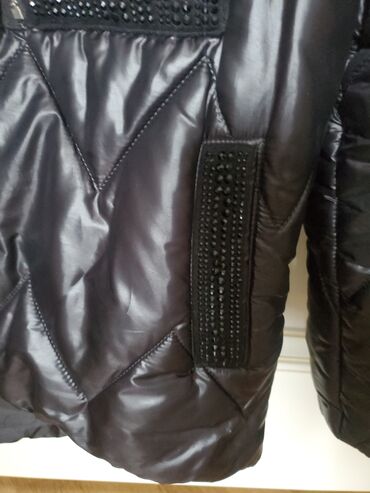 S razmere geden Qara rəngli qadın qış kurtkası.2 3 defe geyinilib yeni kimide qalıb. - Model: qabarıq (puf) dizaynlı, bel hissəsi yığmalı - Material: suya və küləyə davamlı üst parça, isti doldurm...