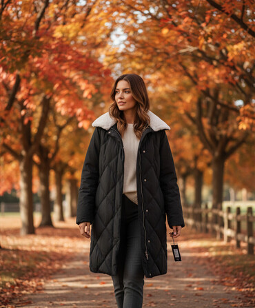 Qara süni kürk və dəri detallar ilə qadın üst geyimi - Rəng: dərin qara - Material: yumşaq, parlaq teksturalı süni kürk; qolların uclarında və ön hissədə dəri detallar - Dizayn: geniş yaxalı, qısa...