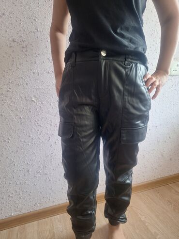 Qadınlar üçün qara dəri görünümlü kargo şalvar