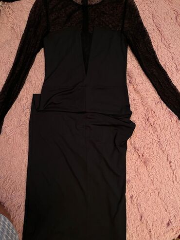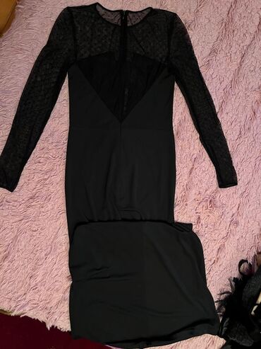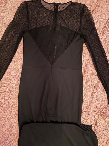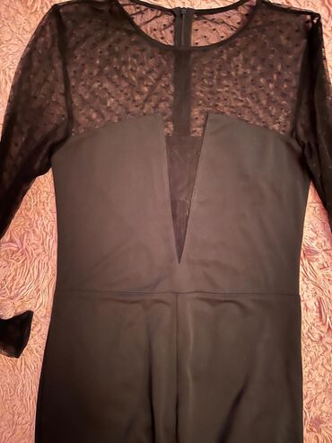 Ölçü/etiket məlumatı şəkillərdə göründüyü qədər. Don klassik qara rəngdə, tül və dərin V paneli sayəsində bədənin xəttlərini vurğulayan elegant görünüş yaradır. Gizli fermuar rahat geyinib-soyunma imkanı verir.