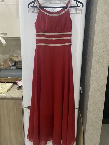 Qırmızı rəngli zərif ziyafət/libas - Model: Uzun, axıcı ətəkli