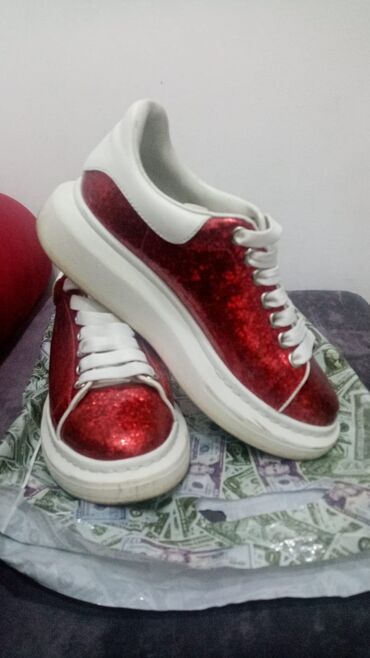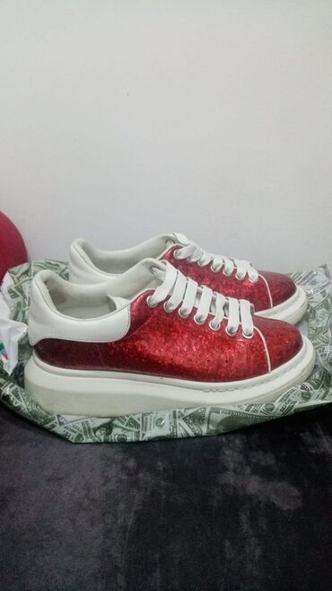 Alexander McQueen platformli krossovkalar - Rəng: qara üst, ağ burun və qalın ağ daban - Material: parça/kanvas üst hissə, rezin burun qoruyucusu və çoxqatlı rezin platforma - Bağlama: klassik kor...