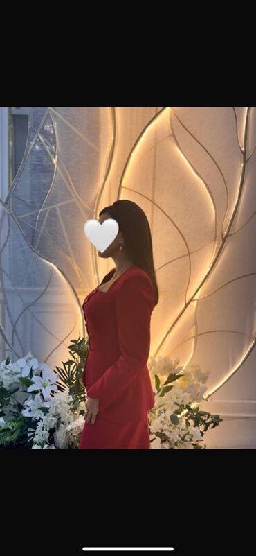 Qadınlar üçün iki hissəli kostyum – cəsur “crimson” rəngində (şəkildə göstərilən S ölçü) - Üst: V-kəsimli, tək düyməli, belin formasını vurğulayan ceket. Ön hissədə iki yamaqlı cib, qolu tam uzunl...