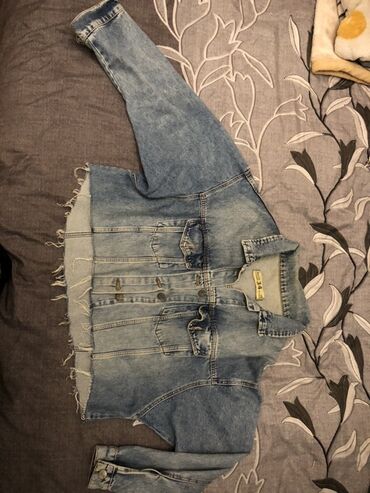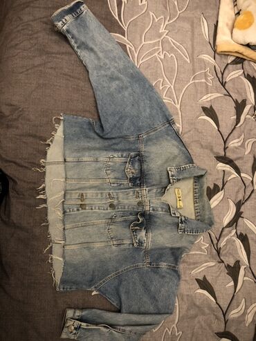 Qadınlar üçün klassik denim cins gödəkçə - Rəng: tünd maviyə çalan klassik yuyulma - Material: elastik denim (pambıq əsaslı) - Model: qısa “cropped” kəsim - Astar: astarsız, yüngül - Detallar: met...