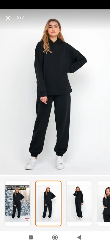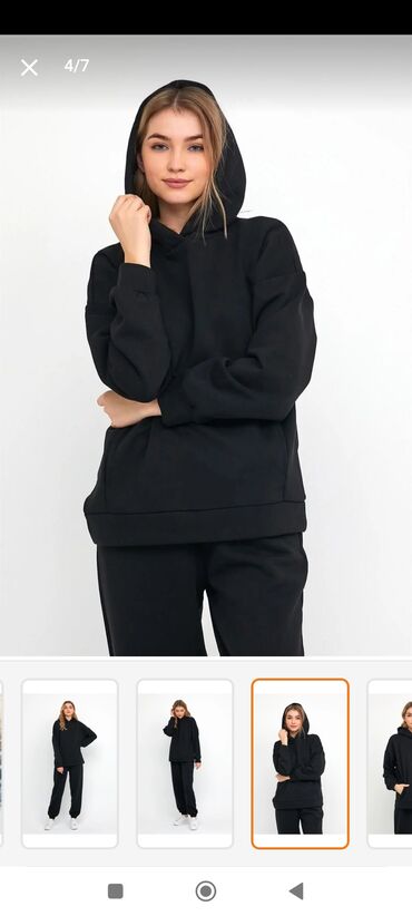 Şəkillərdə göstərilən modelləşdirmə: qara oversize kapüşonlu svitşot + elastik ağzlı şalvar. Rahatlıq və minimalizm sevənlər üçün ideal dəstdir.
