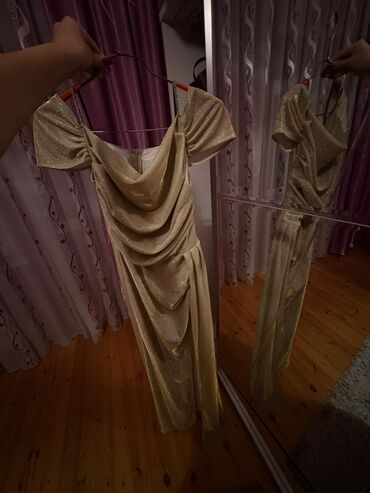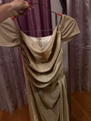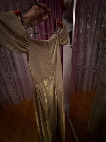 Qızılı rəngdə, parıltılı gecə/ziyafət libası Bircə dəfə həriyə