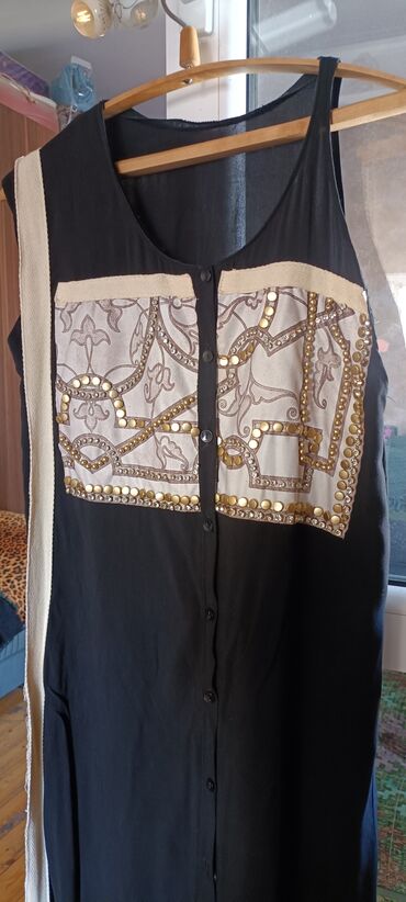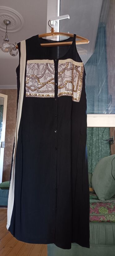 2 defe ad gunune geyilub Razmer S,M Ön hissəsində düymə bağlaması olan qara rəngli qolsuz don. Sinə hissəsi zəncirvari naxışlarla bəzədilmiş bəyaz parçadan ibarətdir. Yan hissəsində ağ zolaq detalı var. Bu don gündəlik istifadə üçün uyğundur.