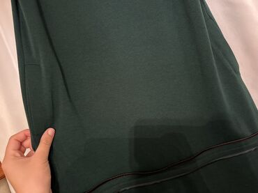 Qadın geyimi – uzun təmtəraqsız paltar - Rəng: tünd yaşıl/şüşə yaşılına yaxın - Model: dar kəsim, bədənə oturan siluet - Uzunluq: midi–uzun (baldırdan aşağı) - Yaxa: yumru - Qol: 3/4 uzunluqda - D...