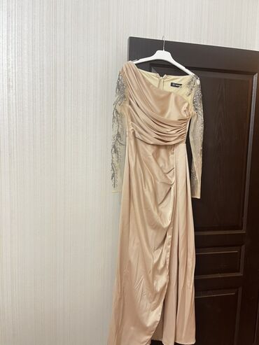 Şampan rəngli zərif ziyafət geyimi 285 azn alınıb (Lady Life markasıdı) - Model: Uzun, düz kəsimli, ön tərəfdə dərin yan yarıqlı - Parça: Yüngül parıltılı atlas/saten görünüşlü - Üst hissə: Korset ...