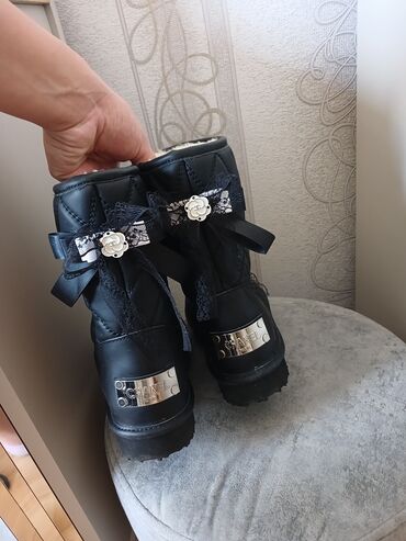 Qadın qış çəkməsi – qara rəngdə, dizdən aşağı model. - Material: hamar, yumşaq dəri effekti olan üstlük - Dizin altına qədər orta hündürlükdə boğaz - Yuxarı hissədə kiçik dekorativ loqo və yüngül b...