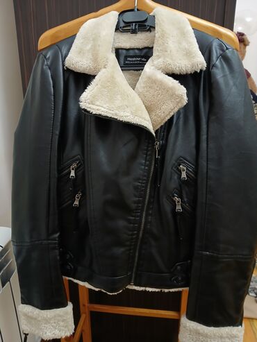 Tebii mex!Ağ rəngli qadın üst geyimi – kürk yaxalı, zəncirli fermuarlı