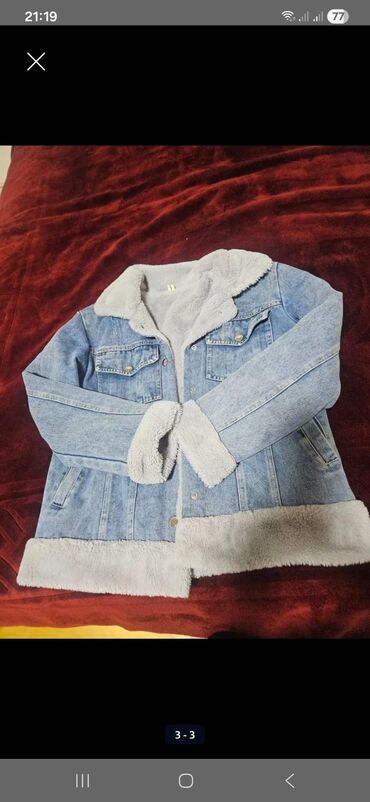 - Material: mavi denim (üst), yumşaq boz süni kürk (astar, yaxa, manjet və ətək hissəsi)