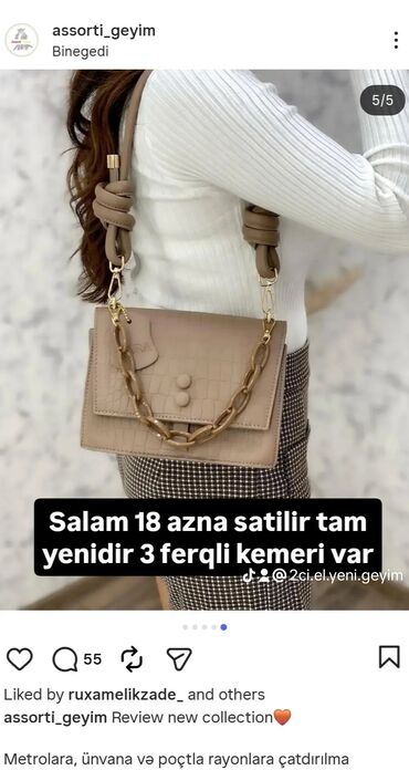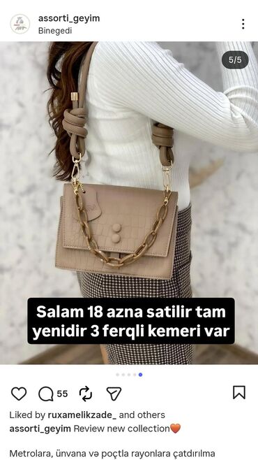- Şəkildə qeyd: “Salam 18 azna satılır tam yenidir 3 fərqli kəməri var”
