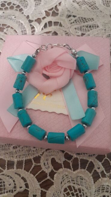 - Firuzə rəngli silindrik muncuqlu model: Parlaq mavi-turkuaz daş silindrlər, metal ara muncuqlar və möhkəm karabiner qapanma. Gündəlik və yay kombinləri üçün ideal vurğu.