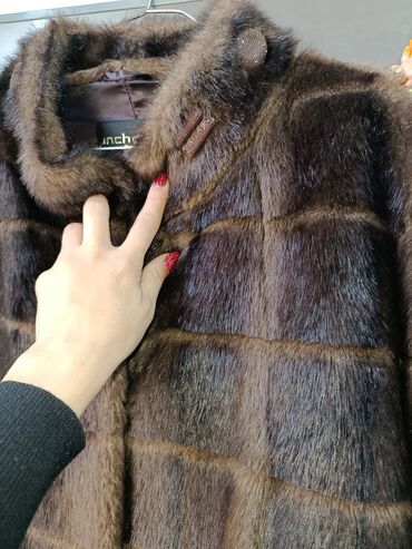 - Material: tünd qəhvəyi rəngli təbii xəz, eninə panellərlə işlənmiş