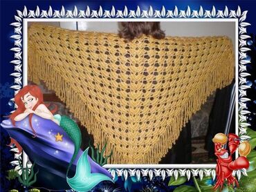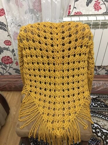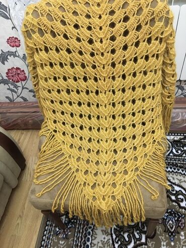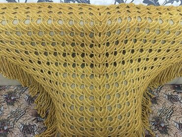 Qizili sarı rəngdə, əl işı ilə toxunmuş üçbucaq şal,olchusu-180 sm.eni,hundurluyu 110 sm. Handmade,Шаль ручной вязки с золотистым оттенком крючком,раз.высота-110 см.ширина 180 см.