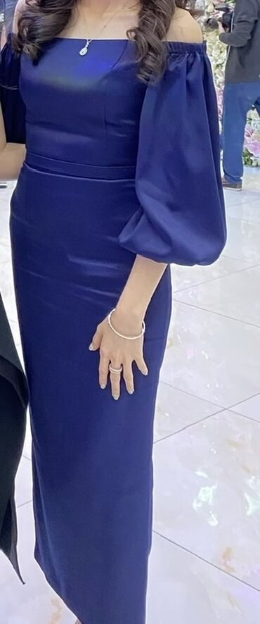 Şık axşam/gecə geyimi – tünd göy rəngdə orta-uzunluqda don.