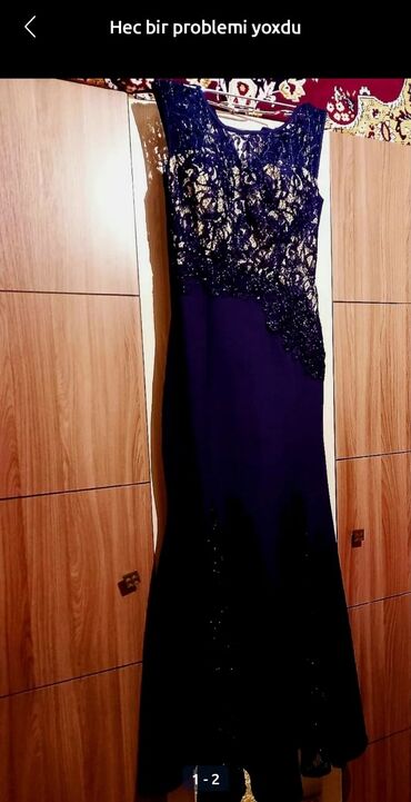 Satılır 150manata alınıb bir defe geyinilib.s razmerdir.Tünd göy rəngdə zərif axşam/libas - Model: uzun, yerə qədər düşən ətəkli - Üst hissə: düz korset tipli büst, incə və açıq çiyinlər üçün sall...