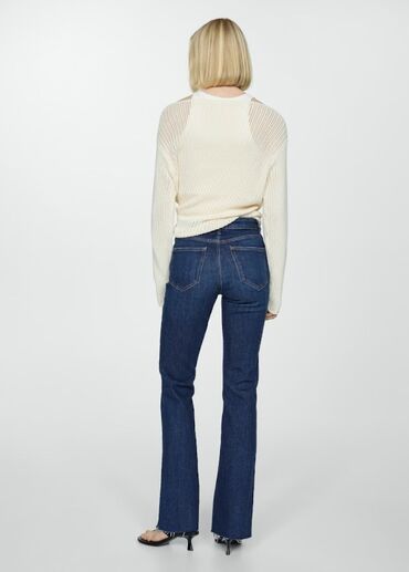 Mango.Yeni.36.Qadınlar üçün tünd mavi flared kəsimli cins şalvar
