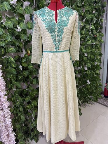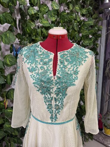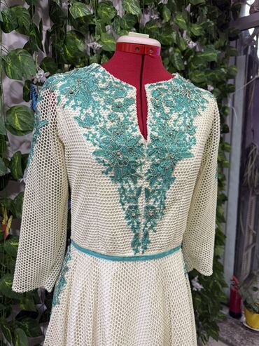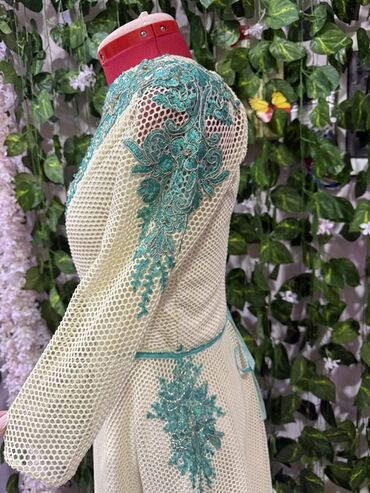 Qırmızı gecə/libas - Rəng: dərin qırmızı (şərab tonu) - Model: Uzun, axıcı tüll ətəkli geyim - Üst hissə: şəffaf tüll üzərində zəngin applike və muncuq/daş bəzəkləri, çiçək motivləri - Yaxa: dərin...