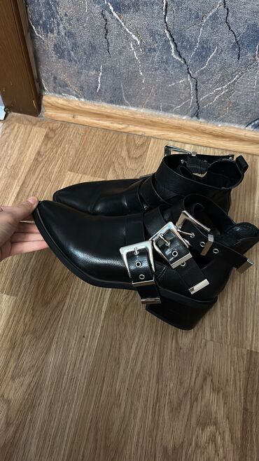 - Dizayn: itiuclu burun, qısa bot uzunluğu, külçə effekti verən parlaq metal tokalar