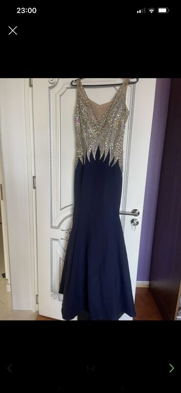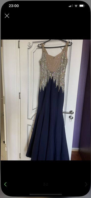 Mavi rəngli uzun ziyafət/libas