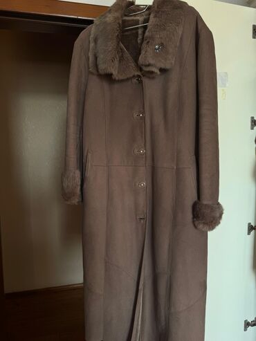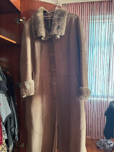 Qadınlar üçün uzun dəridən/şepdən (shearling) palto M ölçü - Rəng: isti tünd-bej/qəhvəyi - Model: uzun, düz kəsim; asimmetrik ön bağlanma xətti - Daxili: yumşaq, qalın tük astarlı (şepdəri), kollar...