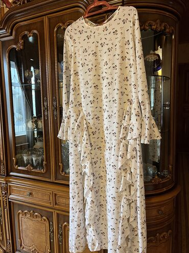 Qadın donu - Model: Qısaqollu, dizə yaxın uzunluqda - Rəng və naxış: Ağ fon üzərində bənövşəyi və çəhrayı dairəvi abstrakt print, ön hissədə qara-ağ zolaqlı detallar - Yaxa: Dairəvi yaxa, ön hissə...