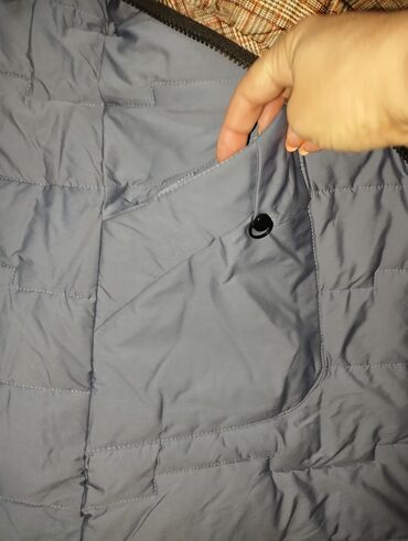- 2 tərəfli geyinmə: biri tək rəng mavi, digər tərəf xaki-qəhvəyi tonlarda xallı/çəkməli (plaid) naxışlı