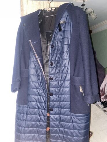 Qadın palto – tünd göy rəngdə, kapüşonlu, klassik-yarım fitilli kəsim. Xüsusiyyətlər: - Ön hissədə ikiqat düymələmə (4 iri dekorativ düymə) - Rahat, dərin yan ciblər - Bel xəttini vurğulayan tikiş...