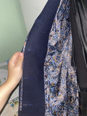 Elemа qadın palto - Model: qısa uzunluqlu, ikiqat düyməli (double-breasted) dizayn - Rəng və naxış: tünd lacivərt əsas üzərində xırda ağ “mələkotu” tipli tekstural naxış - Material: qalın, toxumal...