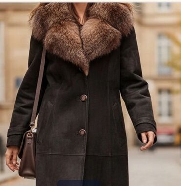 Poçtla çatdırılma mümkündür. Qadın üçün təbii dəridən uzun palto - Material: qalın, yumşaq süet (təbii dəri) və üzəri tüklü təbii kürk hissələr - Rəng: tünd qəhvəyi süet, kontrastlı qəhv...
