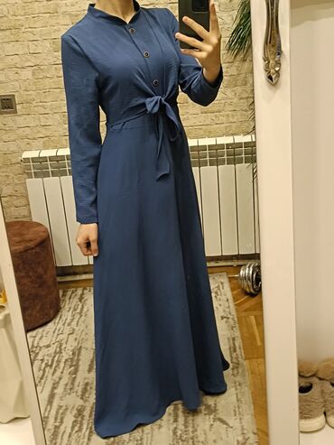 - Model: uzun, düz kəsim, beldə bağlama kəməri ilə - Uzunluq: maxi -