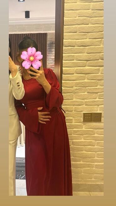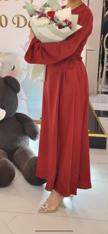 Cəmi 1 dəfə geyinilib Qırmızı rəngdə, zərif kəsimli uzun don. - Brend: PRINCESS - Ölçü: 42 (etiketdə göstərilib) - Model: A-kəsim, tam uzunluq - Yaxa: dairəvi - Qol: hər iki tərəfdə çoxqatlı falban...