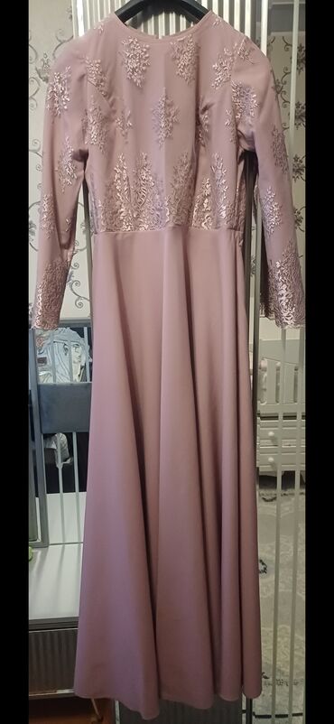 Zərif maxi don – toz gül rəngi. - Üst hissə və qollar zərif naxışlı