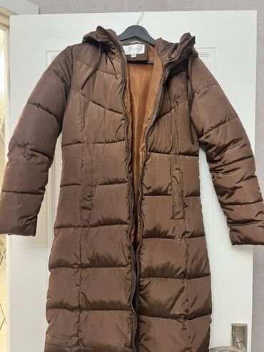 S razm etiketli 80m! (150 m alinmiwdi Uzun puffer qadın palto – krem/bej rəngdə - Model: uzun ölçü, dizdən aşağı kəsim - Rəng: açıq krem/bej - Kapüşonlu - Üfüqi tikişli “puff” panellər – isti saxl...