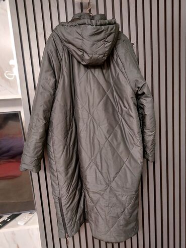 Qadınlar üçün qışlıq şişmə palto - Rəng: zeytun/boz ton - Ölçü: 50 (etiketdə) - Uzunluq: orta (bud səviyyəsi) - Kapüşonlu, qalın və isti doldurmalı - Ön hissə tam uzunluqlu səkkizbucaqlı tikişli n...